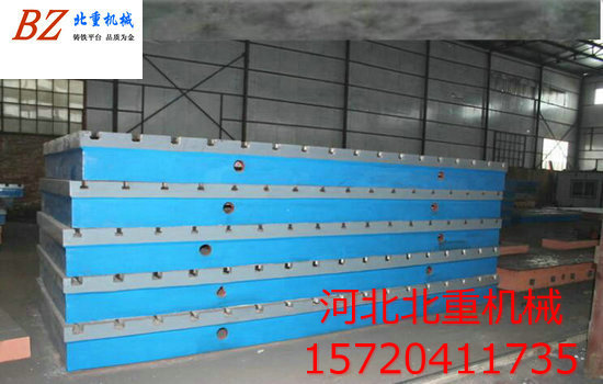 T型(xíng)槽平台設置(zhì)的(de)加強筋(jīn),能夠提高鑄鐵模的結構(gòu)強度,利於防止平板因內應力太大而(ér)開裂,由於T型槽平台(tái)采用了(le)鑄鋼材(cái)料,增強了(le)鑄鐵模抗熱脹冷縮的強度(dù),並且即使發生開裂,也易對其裂縫進行焊接修補,從而能夠重複使用,大大延伸了T型(xíng)槽平台使用壽命。