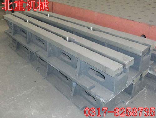 鑄(zhù)鐵T型槽鐵工作(zuò)麵硬度為HB170-240,經過兩次人工處理(人工退火600度-700度和自然時效)使該產品的精度穩定,耐磨性能好。鑄鐵地軌、鑄鋼地軌長度規格(gé)可以做成500mm到4000mm以內的各種規格。外形(xíng)尺寸、每米長度重量要根據客戶要求(qiú)承重(chóng)來確定,北(běi)重機(jī)械製造免費為客戶設(shè)計(jì)圖紙、提供前期服務!