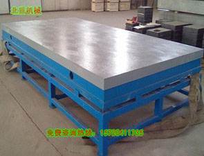 鑄(zhù)鐵平台外觀基本上是箱體式,工作麵有長方形、正方(fāng)形或圓形,材料(liào)為HT200-300,QT400-600,采(cǎi)用刮研工藝,工作麵上可加工V形、T形(xíng)、 U形槽、燕尾(wěi)槽、圓(yuán)孔、長孔等,是用於工件、設備檢(jiǎn)測、劃線(xiàn)、裝(zhuāng)配、焊接、組(zǔ)裝、鉚焊的平麵基準量具。