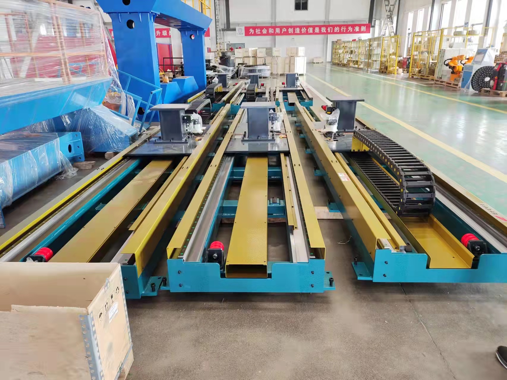 行走軌道(dào)可(kě)以配合國產機(jī)器人,也可以配進口(kǒu)機器(qì)人使用。如果(guǒ)咱們想要軌道跟機器人做直接聯動(dòng),也就是機器人在(zài)行走軌道上(shàng)麵(miàn)邊走邊工作,那行走軌道裏麵裝的電機,是需要跟機器人同品牌同型號的(de),所以一般這個第七軸電機是(shì)需要跟機器人配套的,可以在(zài)購買機器人的時候跟機器人廠家來配。